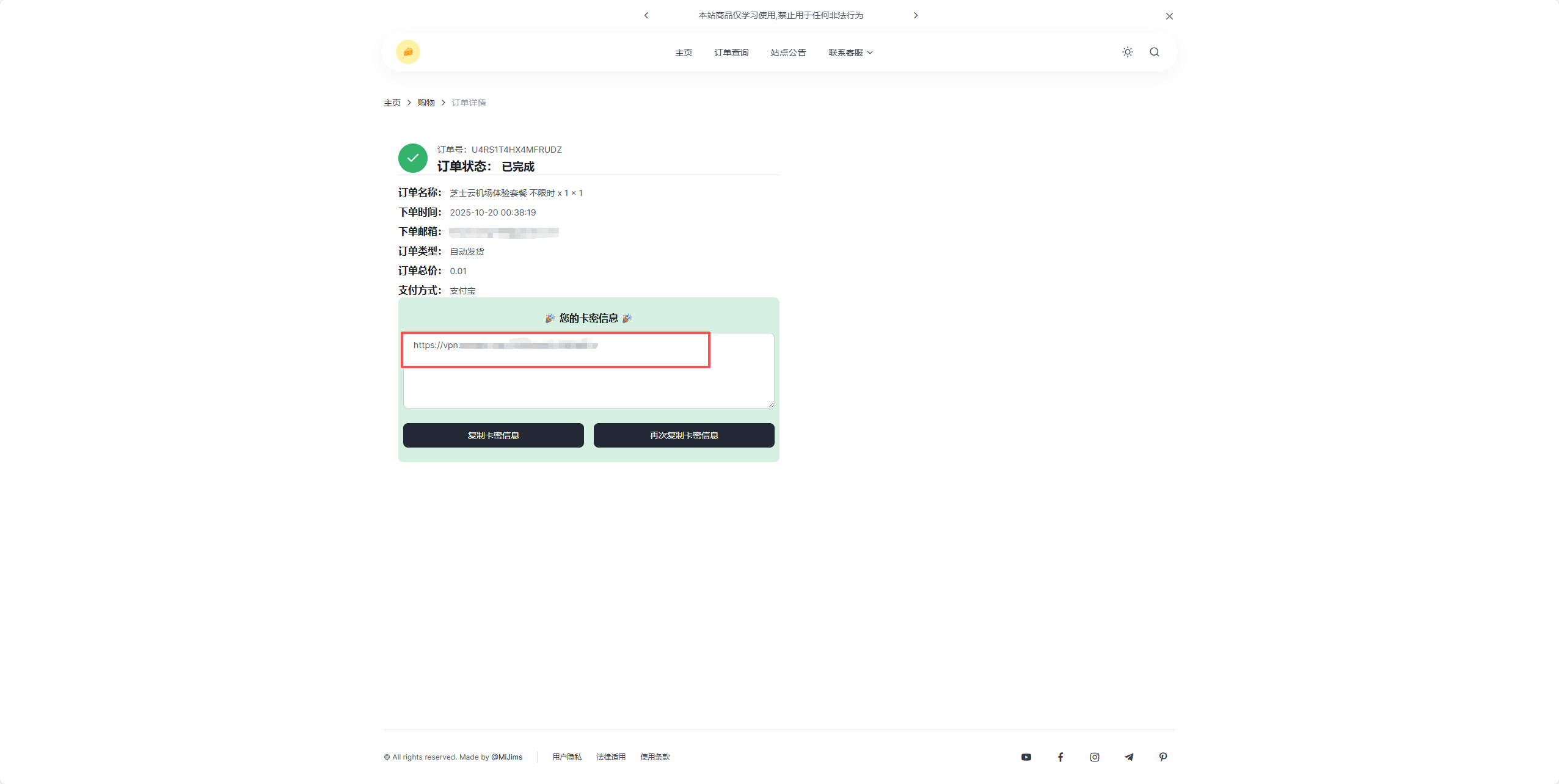 支付完成后会自动跳转,这时候就可以看到专属于你的订阅链接了